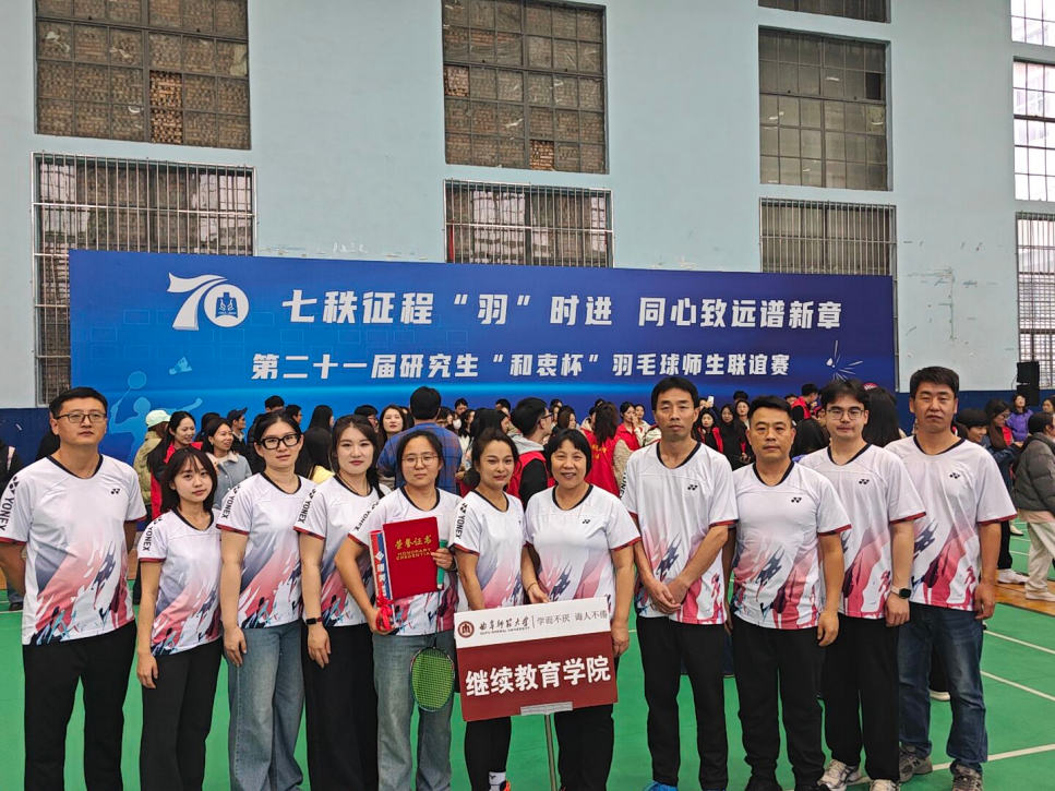 10月24—26日,我院师生参加曲阜师范大学第二十一届研究生“和衷杯”羽毛球师生联谊赛,我院派出 6名教师和6 名研究生组队参赛,并获得了体育道德风尚奖。比赛过程中,参赛队员努力拼搏,全力以赴,精诚团结,各自打出了自己的水平,展现出了昂扬向上的精神姿态和日趋进步的球队实力。本次比赛强化了师生沟通交流,强健了体魄,锻炼了意志,期待本次比赛助力推动全体师生的学习和教学科研工作,期待来年学院成绩更上层楼。
